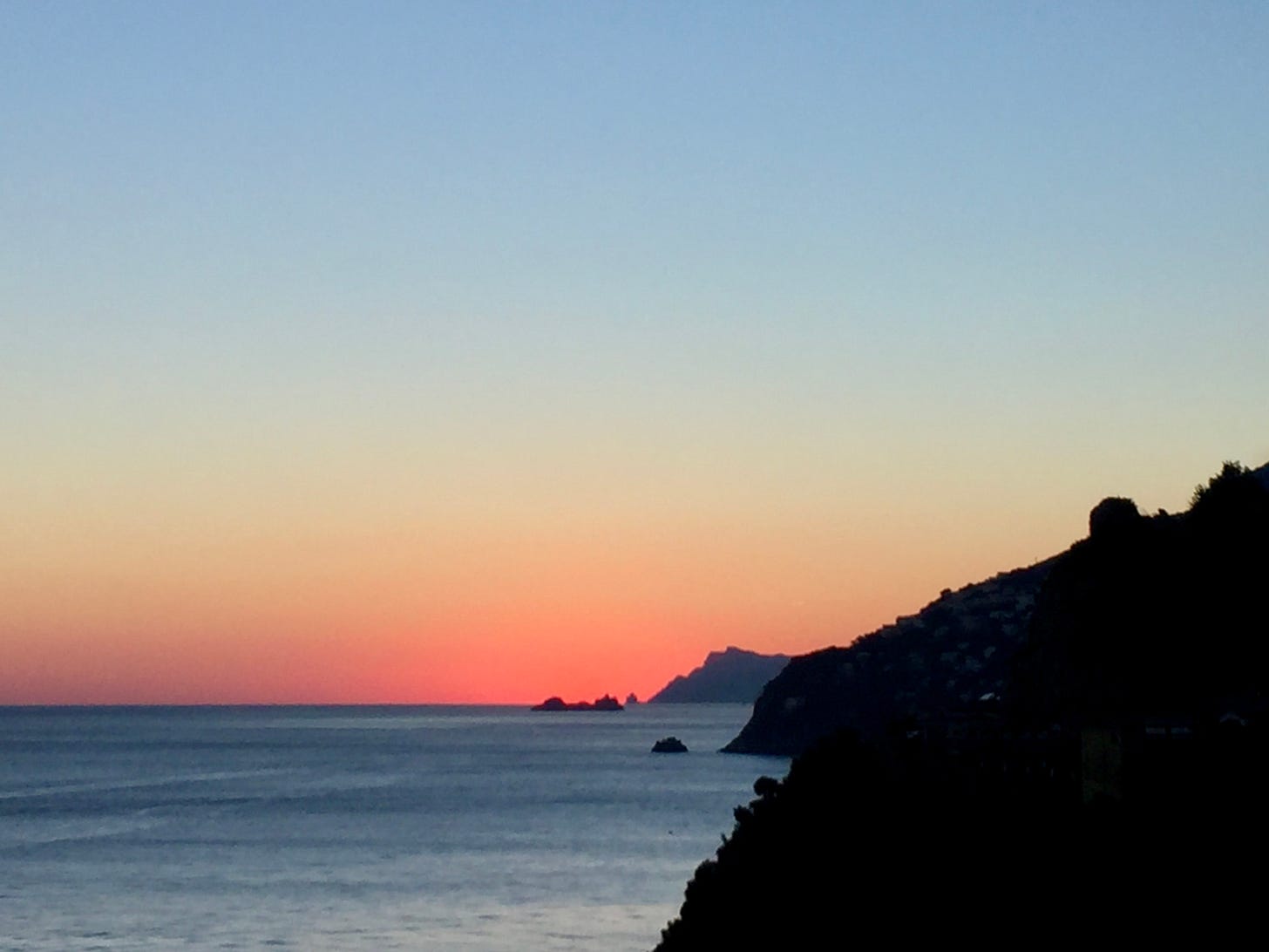 About twenty minutes later, the young man returned in a black Mercedes and quoted us a fair price to Positano. My friend was apprehensive, but this was the option presenting itself, and she agreed. The driver, in his early twenties, was warm and completely at ease. He spoke some English and within minutes my friend had relaxed and was chatting and laughing with him. We drove along the coast as the sun was setting, the day finally catching up to us.