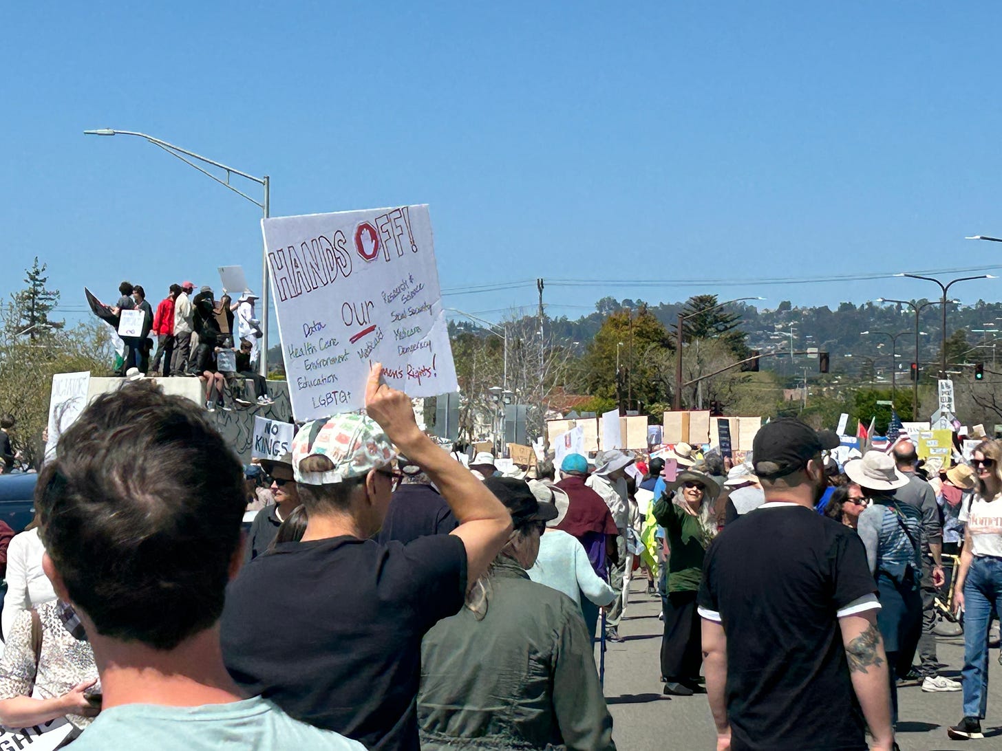 It wasn’t close to as daring as blocking a freeway. There weren’t any speeches. Some people were marching and chanting. Others were dancing. Many held signs. It felt more like a show of support. A way of saying: we’re still here. we still care.